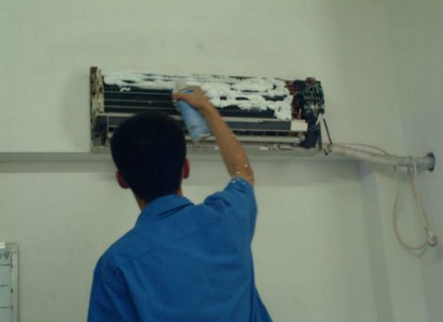 | 武强空调维修师傅给武强用户上门维修清洗空调。 |